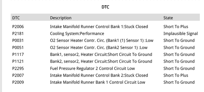 With several different components showing shorts to ground in our scan report, it is likely we have a failing power supply. The test for this theory would be to look at a wiring diagram and see if any of the components showing fault codes share a common power supply
