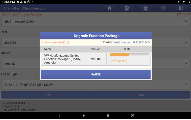 1/ In the Launch VW software main menu, select guided functions, then vehicle variables and download files from Launch.