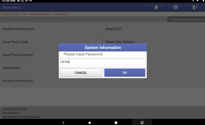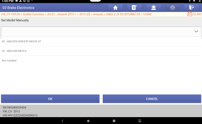 4/ Once you have selected the brake electronics control module, you will need to select the system type. In this case ESP MK25A XT