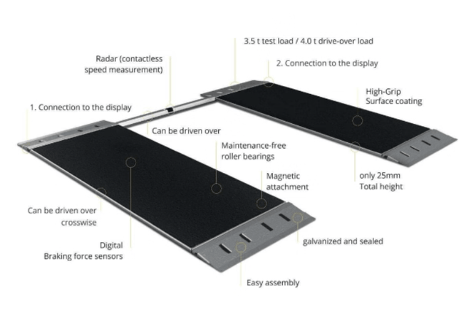 Plate brake testing is an advanced, highly accurate method of measuring braking performance. Cosber's system works by detecting differences in transducer readings and using Cosber's patented radar speed detection system it provides highly accurate and repeatable results as vehicles brake over the moving plates. Unlike roller systems, plate testers allow dynamic measurement without high cost civil and power supply work, maximising return on investment. When combined with Cosber’s engineering quality, this translates to affordable, pinpoint precision and dependable repeatability—vital for workshops seeking to deliver consistent, trustworthy diagnostics.