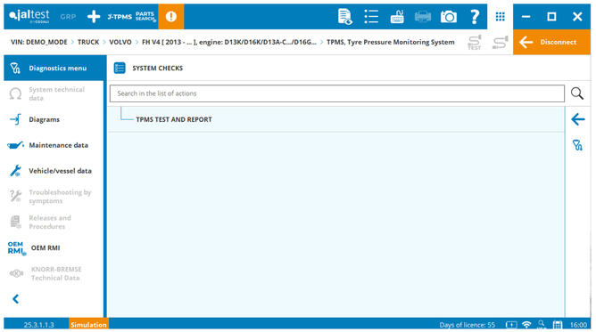 By means of the new Jaltest TPMS device included in the Jaltest Tools range, this function allows a quick test of the current status of the TPMS sensors installed in the vehicle. During the test, tyre pressure and, if available, temperature and sensor ID values will be obtained. At the end, a report with the results obtained will be automatically generated.
