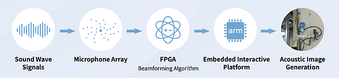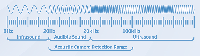 The FOTRIC TD2 acoustic imaging camera can detect not only audible sound (20Hz–20kHz), but also high-frequency ultrasonic signals that are beyond the range of human hearing.