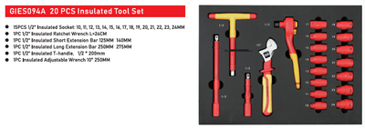 - 20 piece insulated 1/2 inch drive, ratchet driven socket set with adjustable wrench - 10mm to 24mm